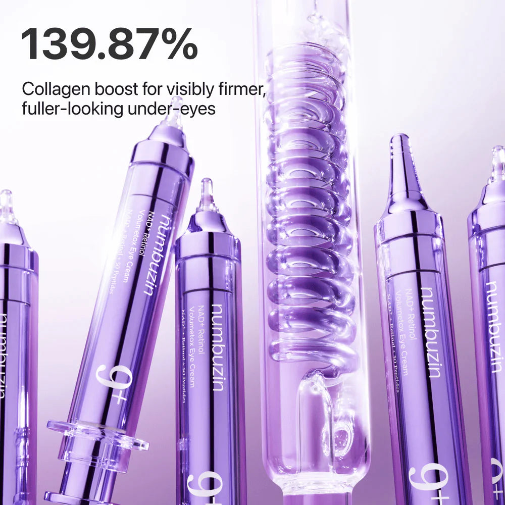 Numbuzin No.9 NAD Retinol Volumetox Eye Cream is a targeted Korean eye treatment designed to visibly improve wrinkles, elasticity, and under-eye volume while remaining gentle enough for consistent use. Powered by NAD bio-energy technology, low-irritation retinol, and volumizing actives, this eye cream helps restore a smoother, firmer, more youthful eye contour.