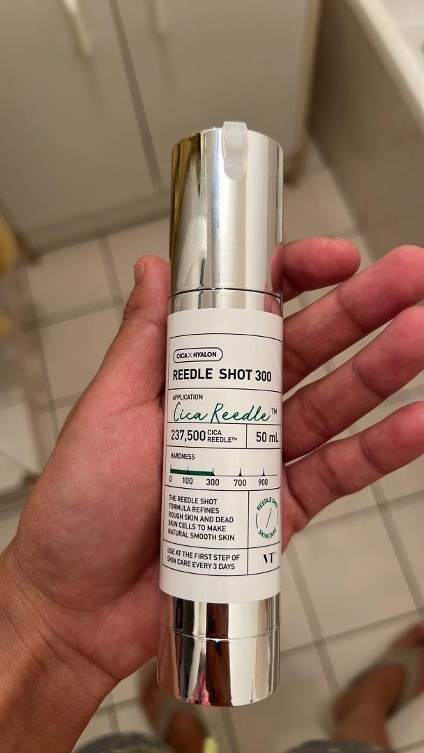 After cleansing and toning, apply 2–3 pumps of the CICA Reedle Shot 300.